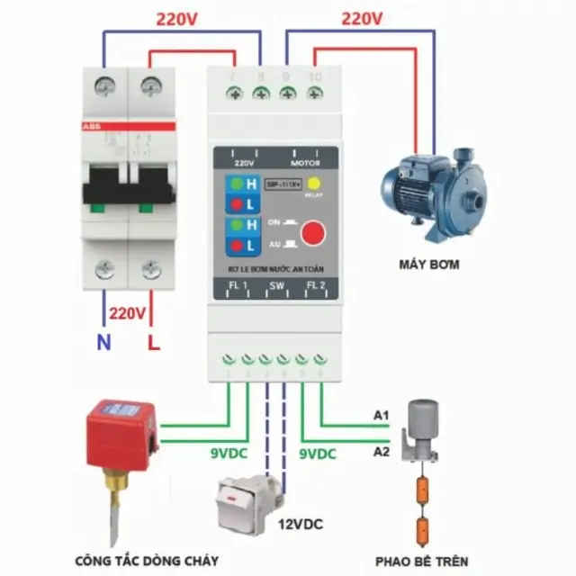 Nguyên lý hoạt động của thiết bị bơm nước tự động dựa trên sự kết hợp giữa các cảm biến và bộ điều khiển tự động. Khi mực nước trong bể chứa đạt đến một mức nhất định, các cảm biến sẽ gửi tín hiệu đến bộ điều khiển để kích hoạt máy bơm. Ngược lại, khi mực nước đạt đủ mức yêu cầu, hệ thống sẽ tự động ngắt máy bơm để tiết kiệm năng lượng và bảo vệ thiết bị. Quá trình này được thực hiện liên tục và chính xác, đảm bảo cung cấp nước ổn định và hiệu quả.